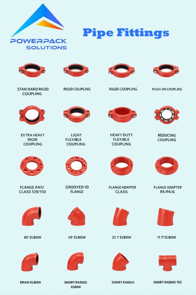 Our product line includes Rigid and Flexible Couplings, Grooved Elbows, Grooved Tees, Grooved/Threaded Mechanical Tees, and a variety of other fittings, available in multiple sizes with pressure ratings up to 300 to 600 PSI.
