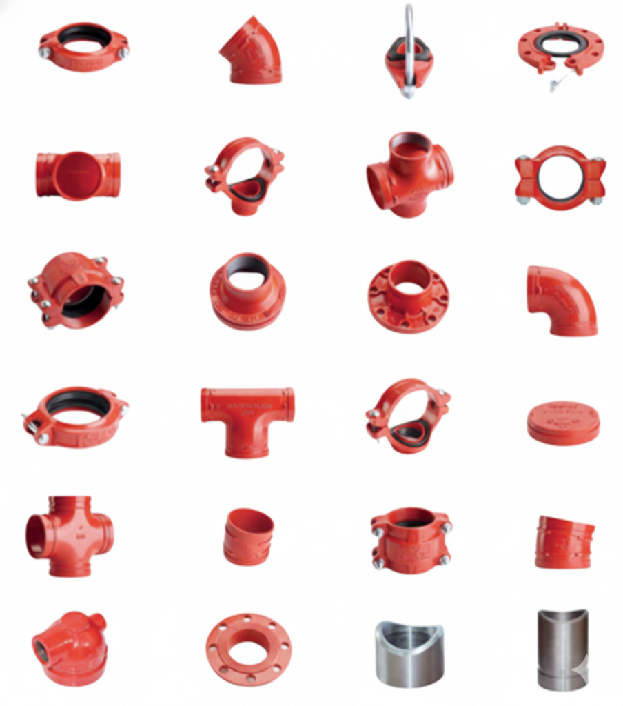 Our product line includes Rigid and Flexible Couplings, Grooved Elbows, Grooved Tees, Grooved/Threaded Mechanical Tees, and a variety of other fittings, available in multiple sizes with pressure ratings up to 300 to 600 PSI.